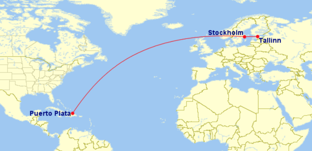 _Kuna lend Stockholmist Dominikaani Vabariiki väljub varahommikul, tuleks Tallinnast Stockholmi ära lennata eelneval õhtul. Sobivad edasi- tagasi lennupiletid Finnairiga Tallinnast Stocholmi saad kätte hinnaga al 169€. Sel juhul maandub lend Stockholmis veidi enne keskööd ning lend Puerto Plata suunas väljub 07.45. _