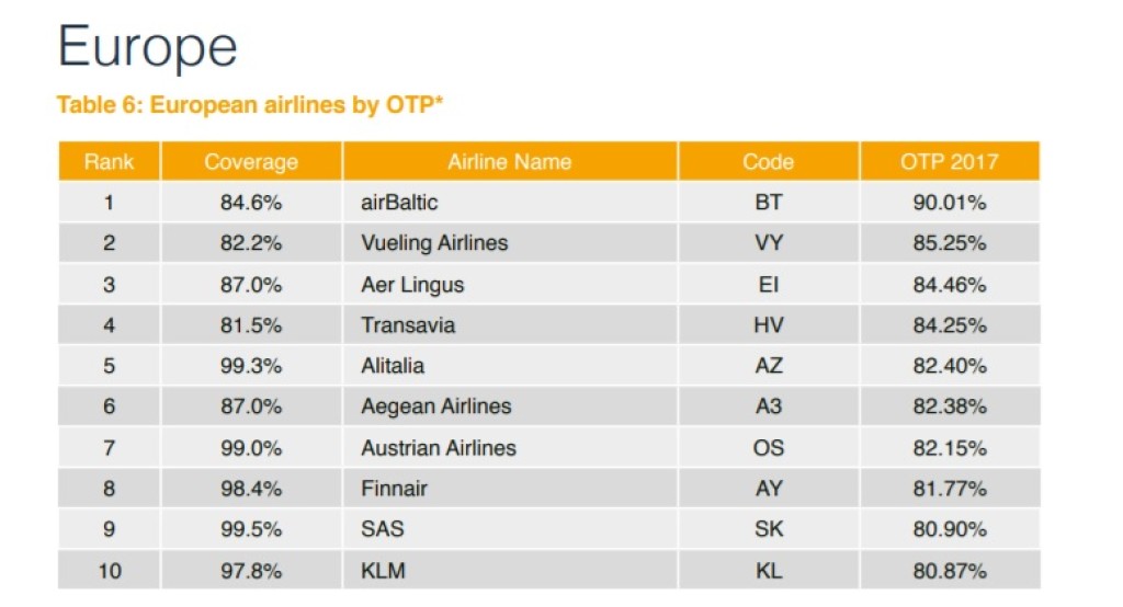 Euroopas on esikolmik airBaltic, Vueling ja iirlaste Aer Lingus (IAG grupp). Aga vahed lennufirmade täpsuse vahel on küllaltki märgatavad.