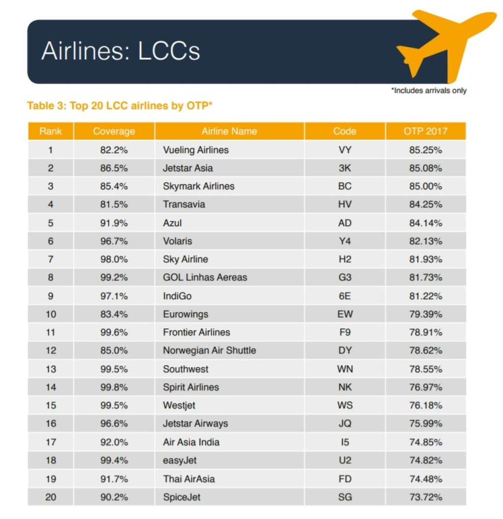 Suurbritannia lennundusstatistikale keskenduv analüüsifirma OAG avaldas äsja 2017. aasta lennufirmade ja lennujaamade väljumiste täpsuse edetabeli. OAG metoodika kohaselt loeti täpseks lend, mis väljus või saabus 14 minuti 59 sekundi sees võrreldes lennuplaani järgse väljumise või saabumise ajaga, arvestades ka lendude tühistamisi. Arvesse läksid ainult plaanikohased regulaarlennud, tšarter- ja teised tellimuslennud statistikas ei kajastu. Raportis kajastuvad maailma 250 suurimat lennufirmat, mis on sooritanud aastas kokku vähemalt 18 000 lendu ning lennujaamad, mida läbib aastas vähemalt 2,5 miljonit reisijat. Tallinnas peaks see number 2017. aastal olema ~2,6 miljonit.