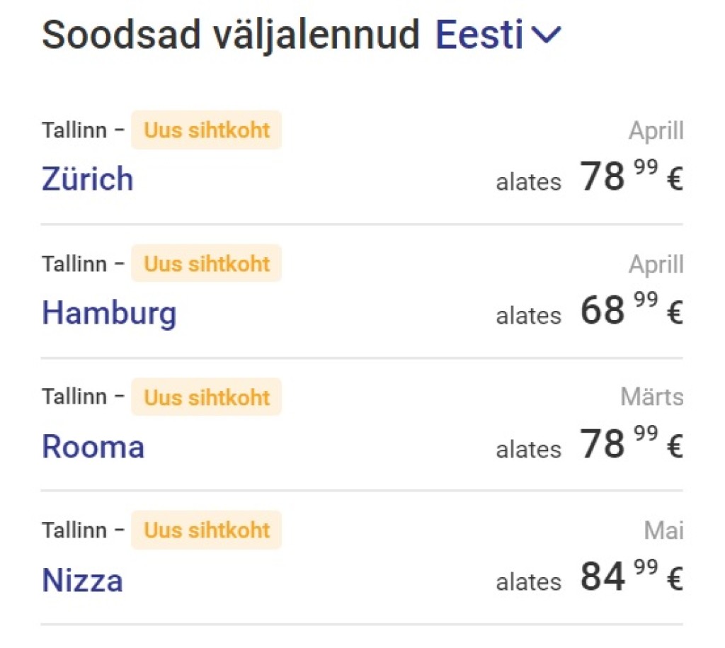 Piletid uutele liinidele on juba müügis. Ühe suuna hinnad algavad 69 eurost.