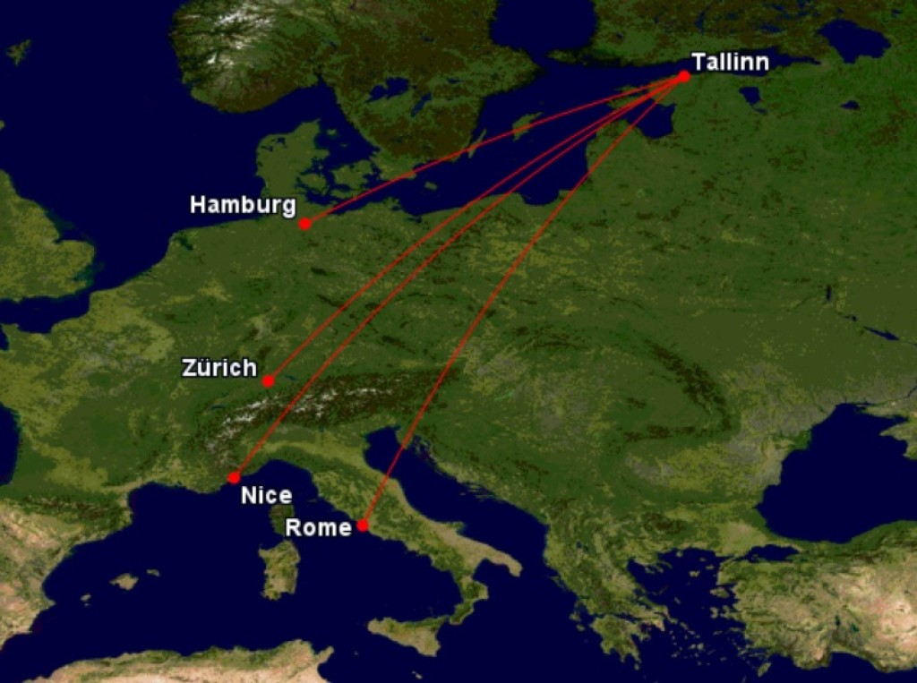 Tallinn – Zürich 07:35 – 09:15 T,N,L Zürich – Tallinn 10:00 – 13:50 T,N,L
