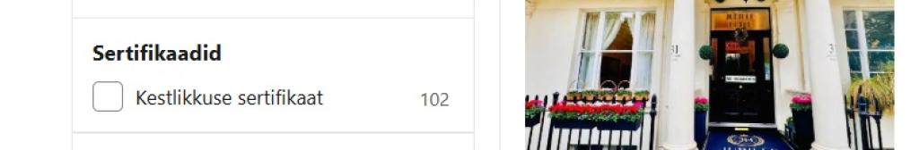 Aga kui otsite Booking.com kaudu hotelle, siis vasakul filtrites on endiselt näha kestlikkuse sertifikaat. Võib eeldada, et ka see on sisult rohepesu, sest taolise "sertifikaadiga" hotelle on igas vähegi suuremas linnas sadades.