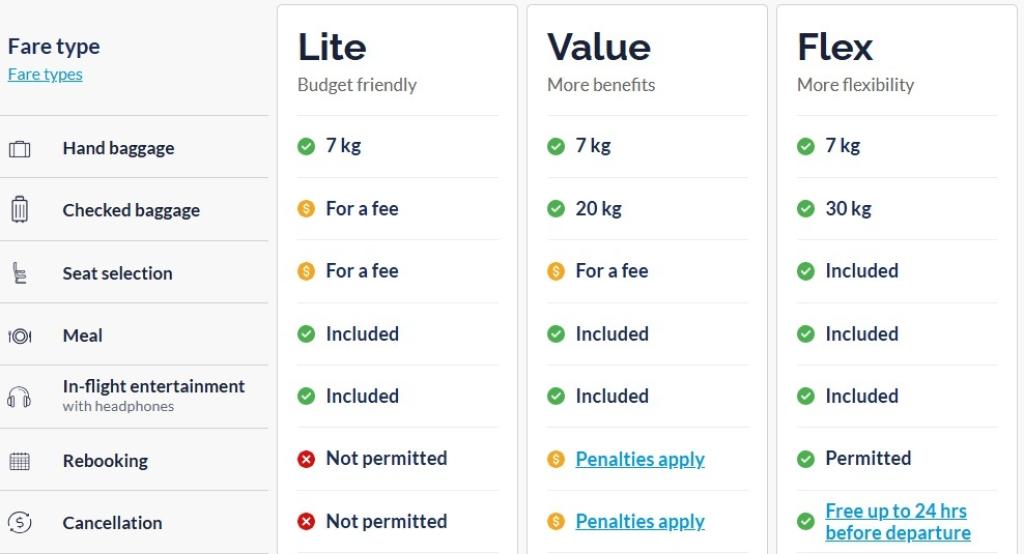 Flydubai turistiklassi piletitüübid alates novembrist: