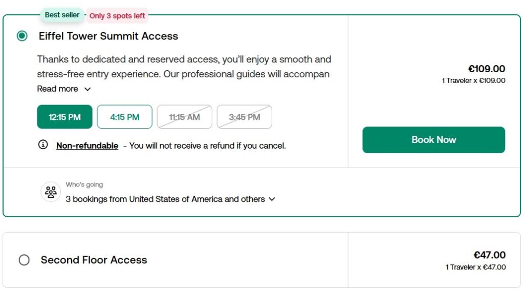Briti tarbijaportaal Which? kirjeldab, kuidas Tripadvisori omanduses olev ja Türgis baseeruv tuure vahendav Viator küsib ilma mingit lisaväärtust pakkumata Pariisi tähtsaima vaatamisväärsuse külastuse eest kuni kolm korda kõrgemat hinda. Skeem toimib lihtsalt: Viatori esindaja ootab sind kokkulepitud ajal kokkulepitud kohas, viib sind liftiga teisele korrusele, aga ei saada sind tipus asuvale vaateplatvormile. Teenus ei sisalda ülevaadet torni ajaloost või midagi muud, mida giidilt tavaliselt oodata võiks. Täpselt sama tulemuse saaks kolm korda odavamalt, kui osta pilet Eiffeli torni ametlikult veebilehelt.