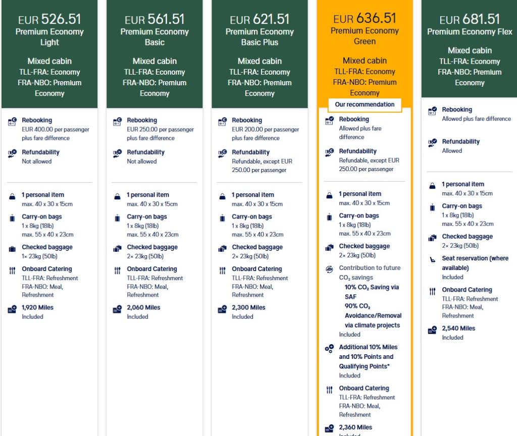 Näide juhuslikel kuupäevadel Tallinn – Frankfurt – Nairobi premium economy klassis:
