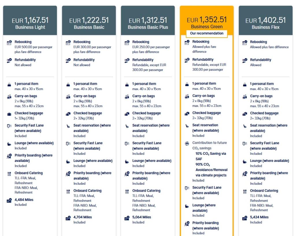 Näide juhuslikel kuupäevadel Tallinn – Frankfurt – Nairobi äriklassis: