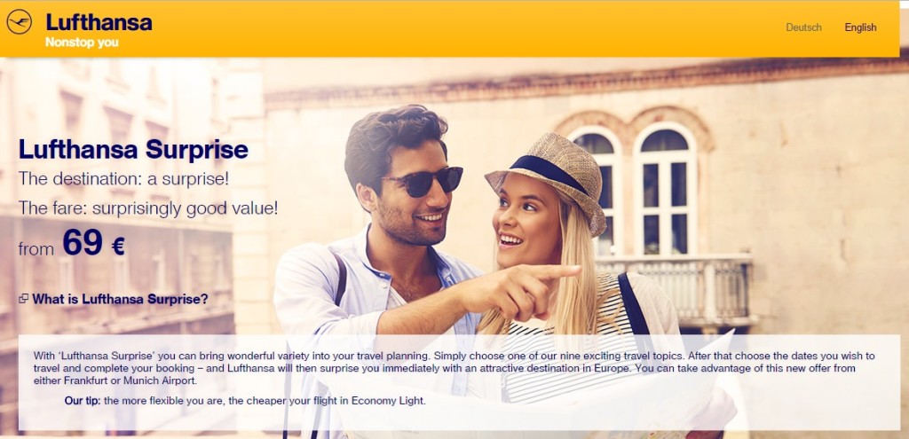 Programm kannab nime Lufthansa Surprise ja on hetkel saadaval ainult algusega kas Frankfurdist või Münchenist. Seega ei pruugi lendu Tallinnast alustades pakkumine nendest kahest linnast tingimata väga odavaks kujuneda.