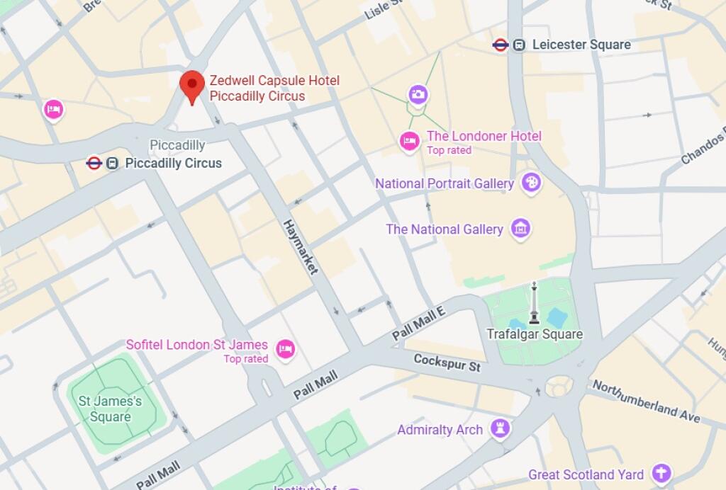Zedwell Capsule Hotel Piccadilly Circus on maailma suurim kapselhotell, kus viiel korrusel asub üle 1000 magamiskapsli. Hinnatundlikule reisijale suunatud hotell pakub Londoni kesklinnas suurepärases asukohas minimalistlikku, kuid taskukohast majutust.