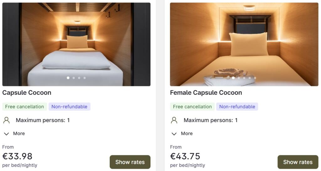 Igas kapslis on Hypnose madrats, Egiptuse puuvillast linad, meeleoluvalgustus ja puhastatud õhuvool. Vannitaoad on ühised privaatsete dušikabiinidega. ja ööpäevaringse turvalisusega.