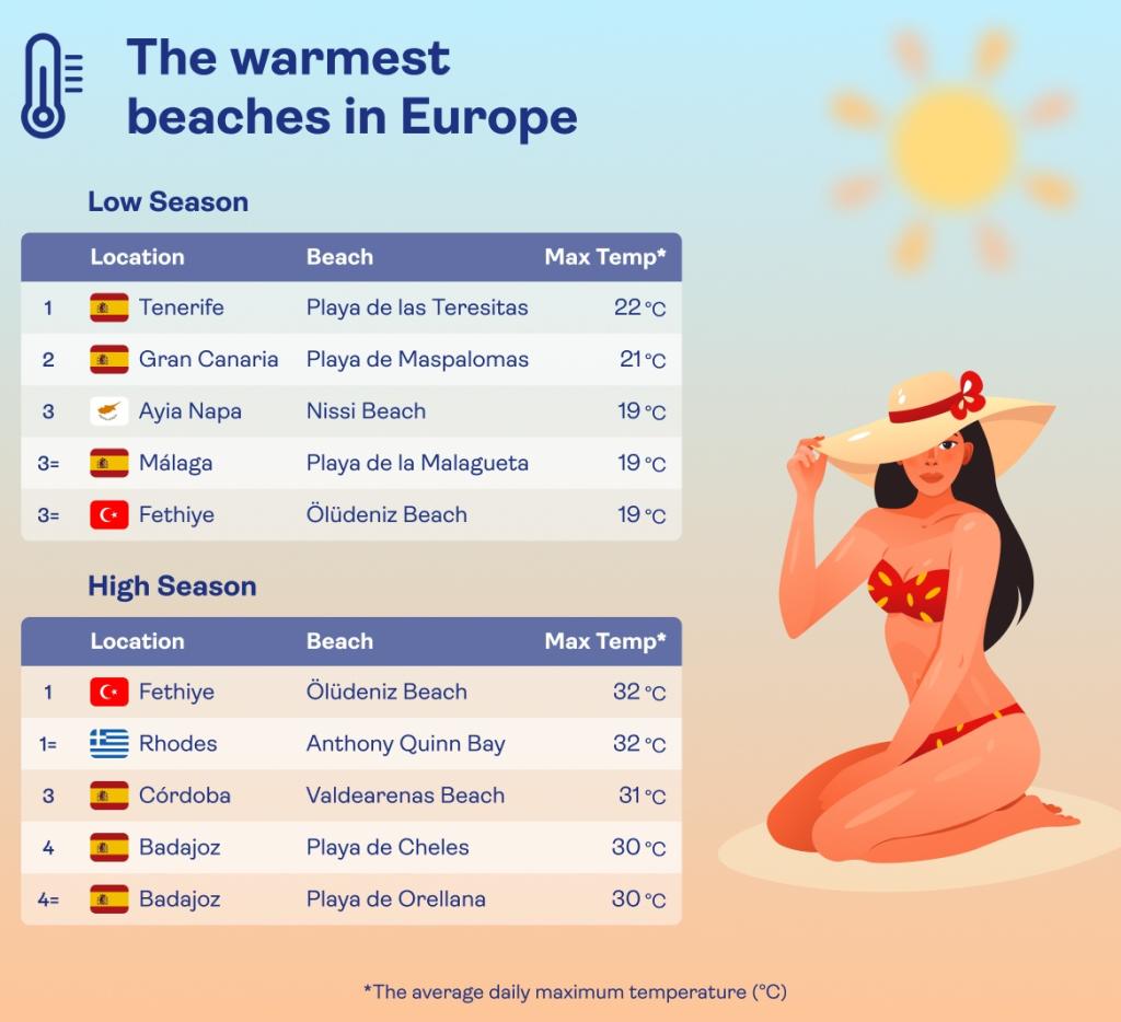 Statistikat vaadates on talvehooajal Euroopa kõige soojem rand Playa de Las Teresitas Tenerifel, kus keskmine päevane temperatuur ulatub 22 kraadini. Siin on tegemist kunstliku rannaga, kuhu 1970ndatel veeti Sahara kõrbest umbes 300 000 tonni valget liiva. Playa de Las Teresitas asub Tenerifel kirderannikul Santa Cruzi lähedal, kuid paljude arvates on Tenerife lõunaranniku randades tavaliselt veidi soojem.