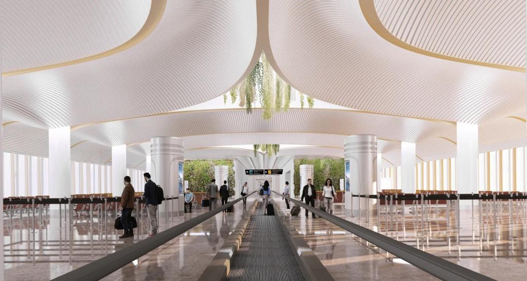 Lennujaama arhitektuurse lahenduse taga on tuntud Zaha Hadidi arhitektuuribüroo, mis kujundas reisiterminali India rahvuslille lootose motiividel.