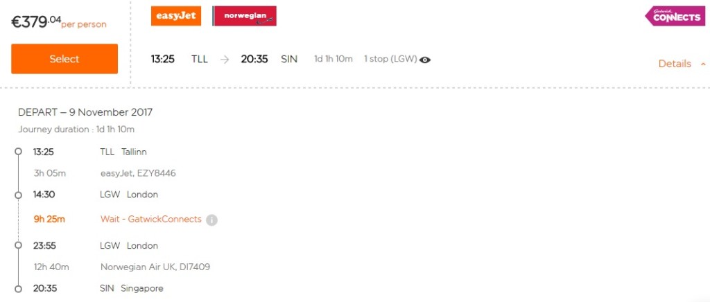 Kuidas asi reaalsuses toimib? Esialgu suurte mööndustega, aga midagi tõepoolest toimib. EasyJetil on teatavasti ühendus Tallinna ja Londoni Gatwicki lennujaama vahel. Ootusi jätkulendude broneerimiseks ei tasuks esialgu siiski liiga kõrgeks ajada, sest esialgu näist toimivat ainult variant Tallinn – London easyJetiga ja sealt edasi Singapuri Norwegianiga. Millegipärast sai broneerida vaid ühe suuna piletit.
