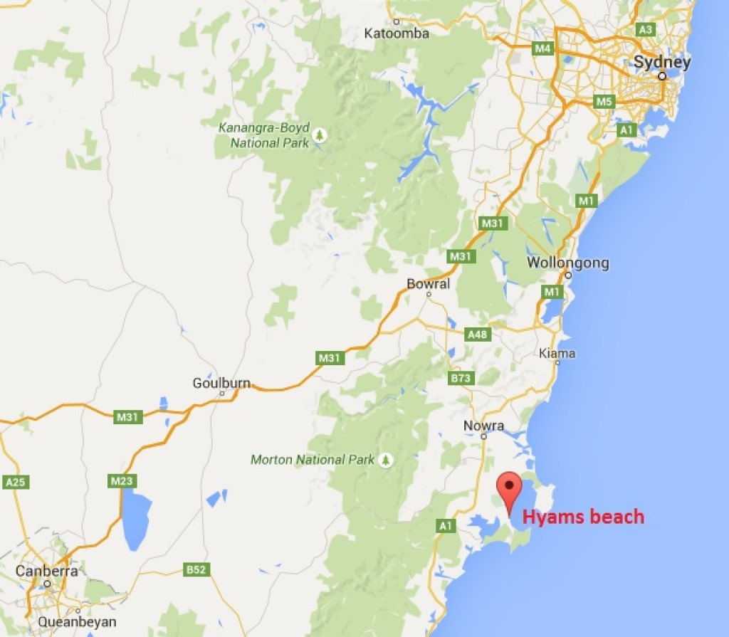Hyams Beach asub nii Sydneyst kui Canberrast umbes 3-tunnise autosõidu kaugusel. Sõit Sydneyst Jervise lahe äärde kulgeb mööda maaililist Grand Pacific Drive'i.