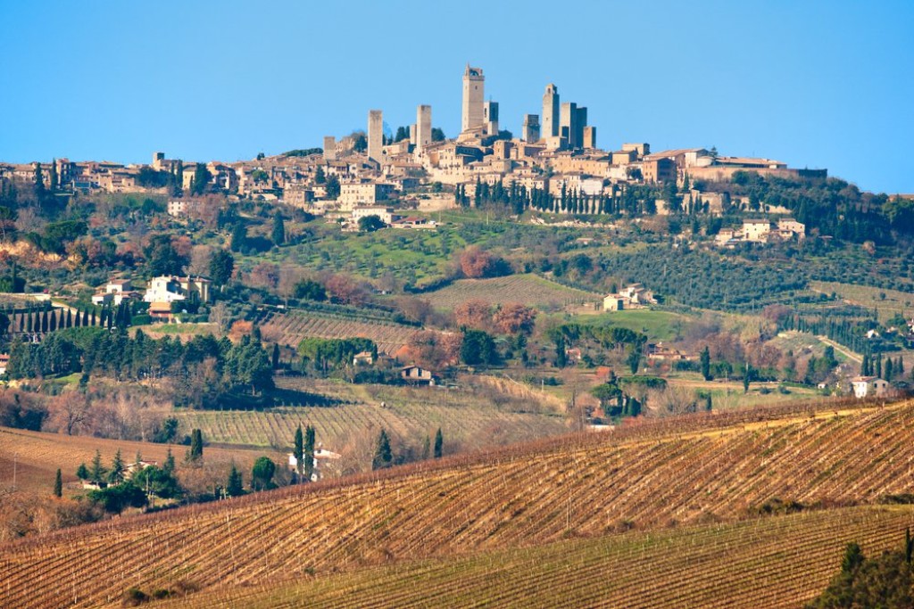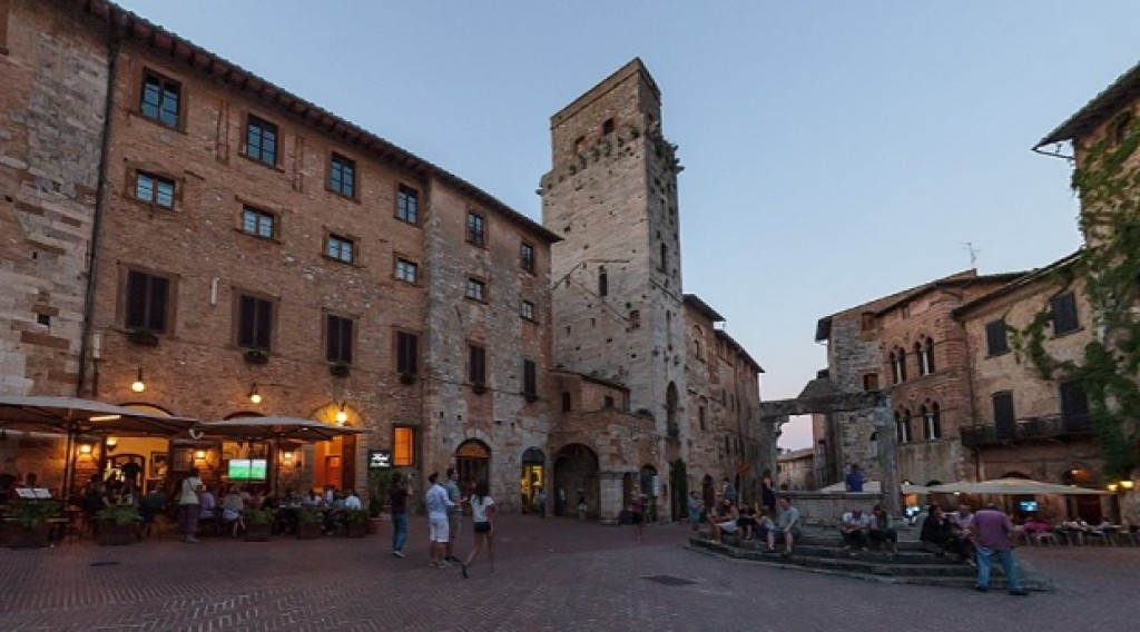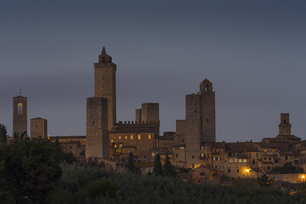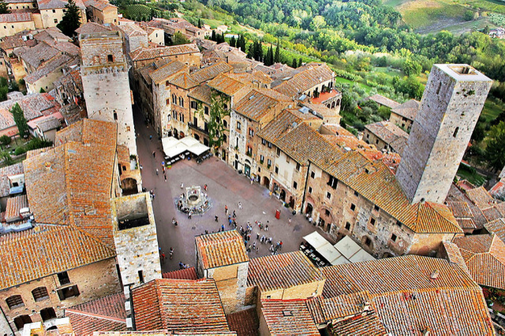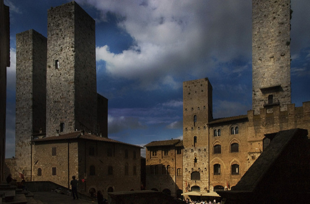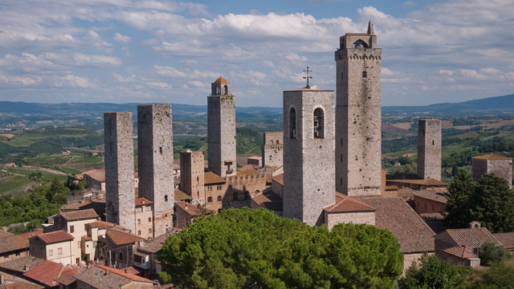 San Gimignano on väike keskaegne linnake Itaalia kuulsas veinipiirkonnas Toskaanas, 56 km Firenzest lõuna pool. Kunagisest etruskide külast välja kasvanud San Gimignano on oma nime saanud samanimelise Modena piiskopi järgi, kes legendi kohaselt päästis linna hunnide Attila käest. Aastal 1199 linn iseseisvus ja puhkes tänu asukohale Canterburyst Rooma kulgeva tähtsa palverännakute tee Via Francigena ääres kiiresti õitsele. Linna õitsenguaeg, kus ehitati hulk kirikuid ja teisi avalikke ehitisi, kestis aastani 1353, kui linn langes Firenze võimu alla. Eelduse selleks oli loonud 1348. aastal linna saabunud Must Surm ehk muhkkatku epideemia, mis tappis suure osa elanikest ning nõrgestas majandust.