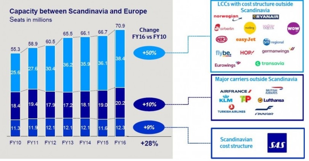 Viimased 10 aastat oma turuosa eest võidelnud ja permanentses restruktureerimisfaasis viibiv Skandinaavia lennufirma SAS on otsustanud sisse lülitada järgmise käigu, alustades hinnasõda Skandinaavi turula aina võimukama Norra odavlennufirmaga Norwegian. Hinnavõitlus puudutab siiski vaid osasid kauglende ja ainult ühte hinnaklassi, milleks on kaugliinide odavaim, SAS Go. SAS Plus ja SAS-i äriklassis muudatusi ei tule.