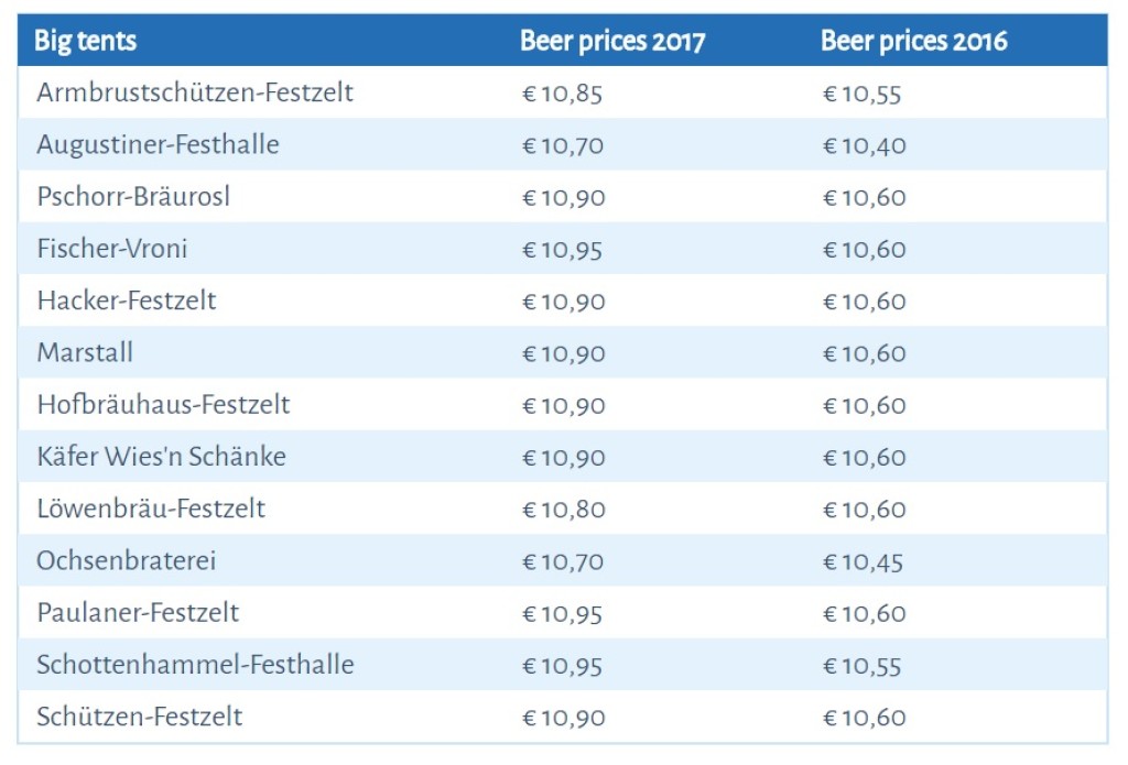 2017. aasta õllehinnad tähendavad, et kohaliku poliitiku algatus, mille kohaselt Oktoberfestil müüdava õlle hind ei tohiks järgneva 3 aasta jooksul ehk aastatel 2017 – 2019 ületada Oktoberfesti 2016. a. kõrgeimat hinda (10,70€), ei läinud läbi.