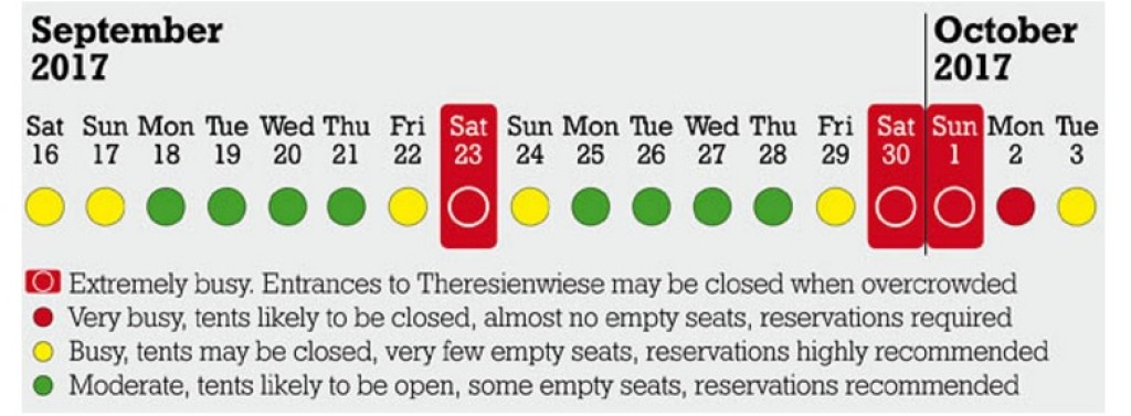 Õlletelkide prognoositav täituvus 2017. a. Allikas: oktoberfest-insider.com