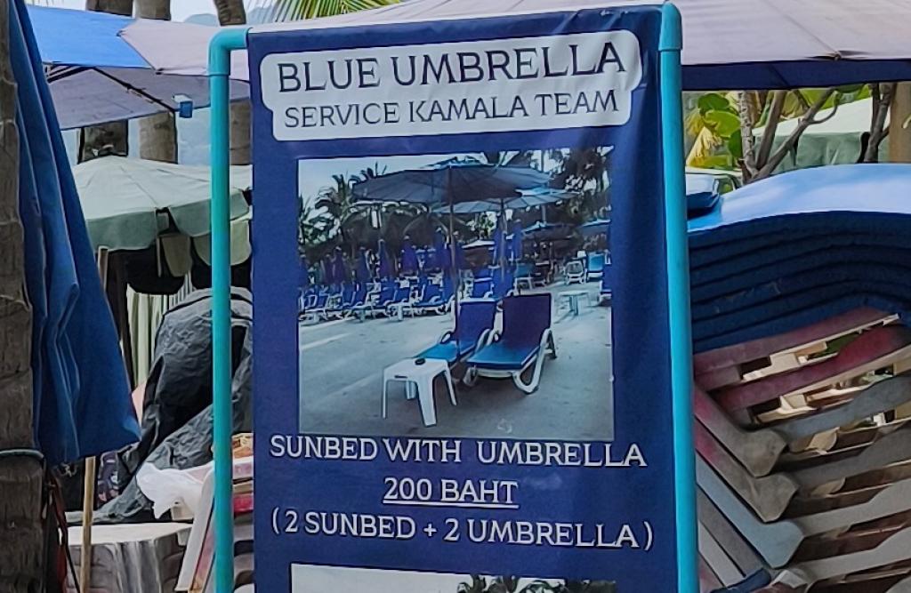 Rannatoolide ühe komplekti (päikesevari + kaks rannatooli) tavahind on 200฿.