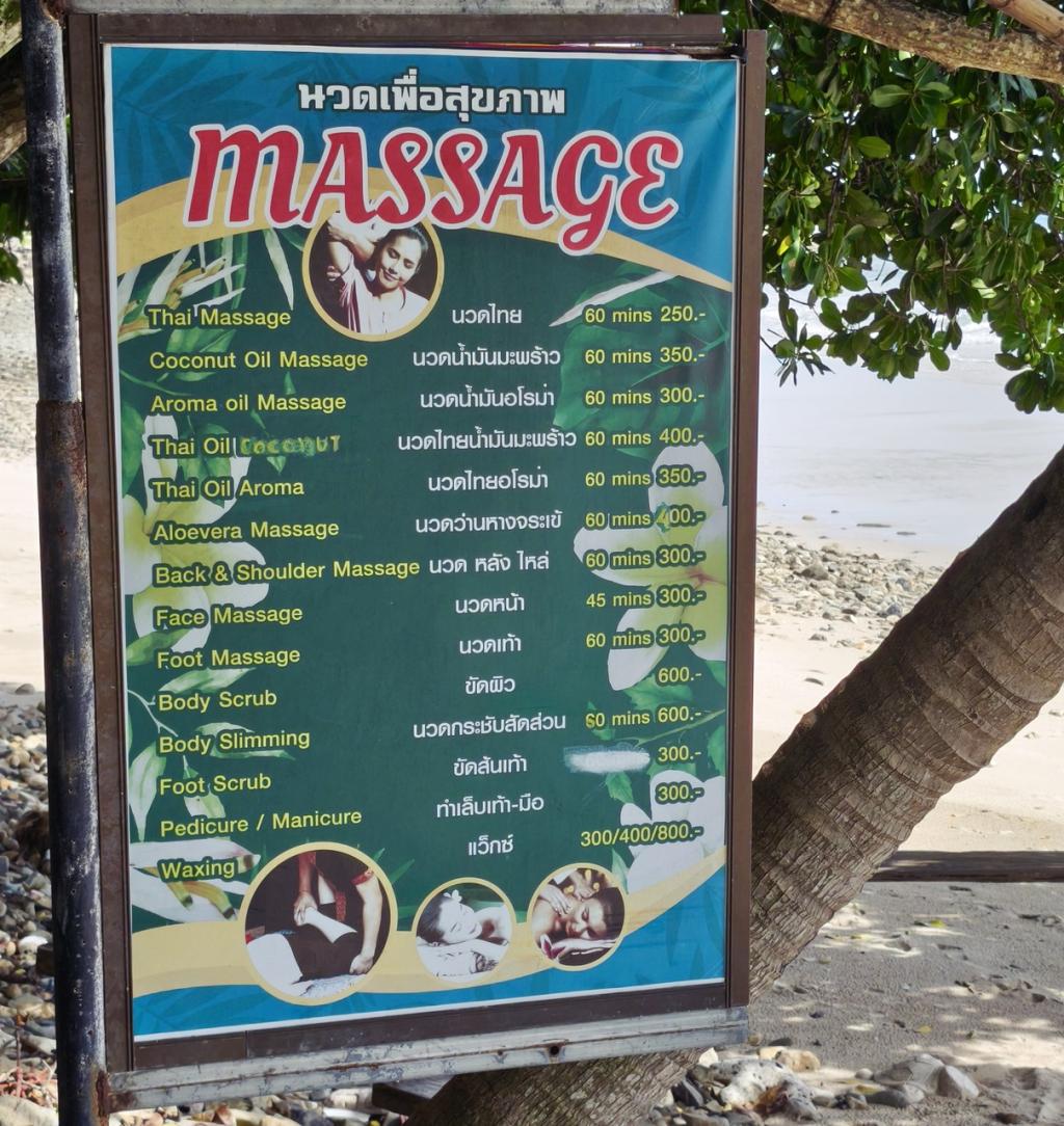 Massaaži hinnad on Tais kõikjal suhteliselt sarnased, odavaim on jällegi Koh Changil.
