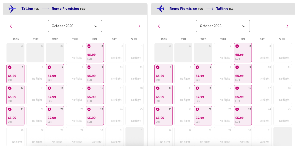 Wizz Air avab tuleva aasta septembris lennuliini Tallinnast Rooma Fiumicino lennujaama (FCO). Lennud on planeeritud toimuma alates 21.09.26 3x nädalas esmaspäeviti, kolmapäeviti ja reedeti. Hetkel tunduvad hinnad veel üsna krõbedate hindadega, aga kevadel või suvel võiks oodata ka päris hea hinnaga pakkumisi.